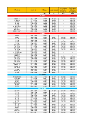 Modèles Années Disques Adaptateurs utilisation utilisation