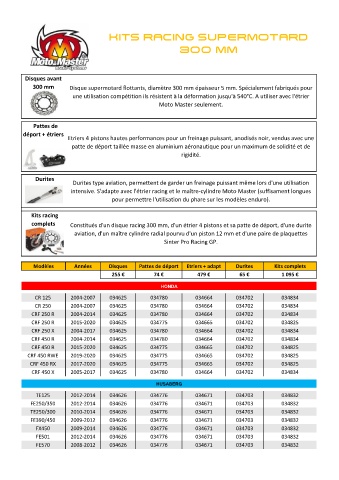 complets Constitués d'un disque racing 300 mm, d'un étrier 4 pistons et sa patte de déport, d'une durite