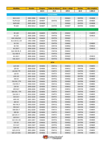 Modèles Années Disques Patte de déport Etrier + adapt Durites Kits complets