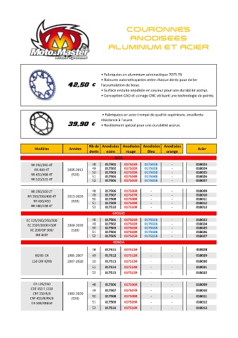 Nb de Anodisées Anodisées Anodisées Anodisées