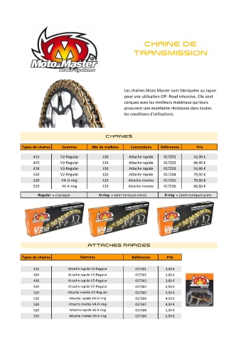 Types de chaines Gammes Nbr de maillons Connections Références Prix