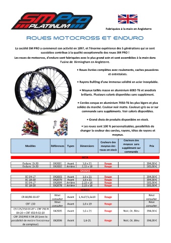 succédées contribue à la qualité exceptionnelle des roues SM PRO !