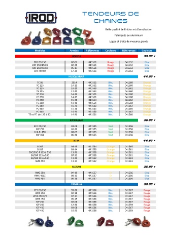 EXC/EXC-F 125 à 530 13-20 041560 Orange 041561 Bleu