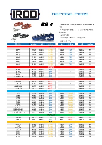 TC 250 14-16 041206 Bleu 041205 Orange 041255 Noir