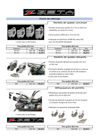 • Pontets central pour guidon 22,2 mm ou 28,6 mm