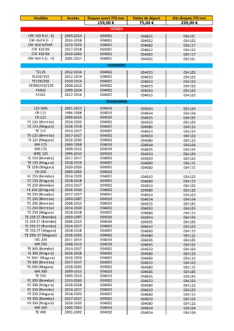 Modèles Années Disques avant 270 mm Pattes de déport Kits disques 270 mm