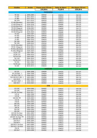 Modèles Années Disques avant 270 mm Pattes de déport Kits disques 270 mm