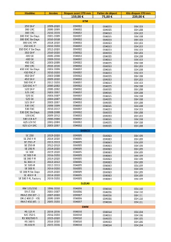 Modèles Années Disques avant 270 mm Pattes de déport Kits disques 270 mm