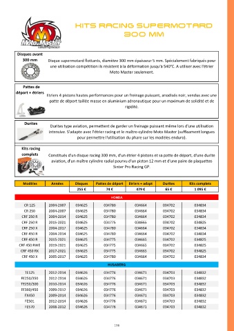 complets Constitués d'un disque racing 300 mm, d'un étrier 4 pistons et sa patte de déport, d'une durite