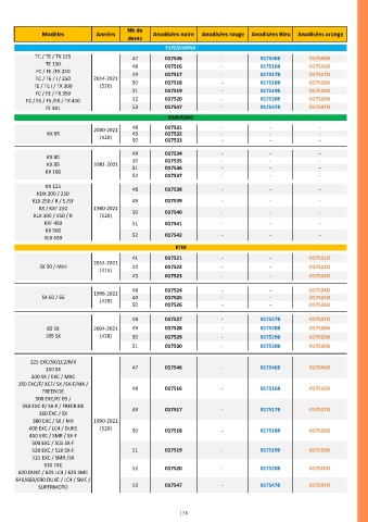 Modèles Années Anodisées noire Anodisées rouge Anodisées Bleu Anodisées orange