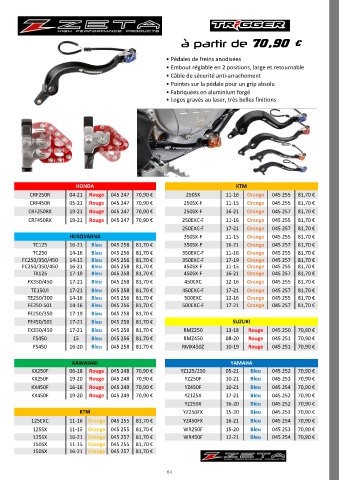 CRF450RX 19-21 Rouge 045 247 70,90 € 250EXC-F 11-16 Orange 045 255 81,70 €