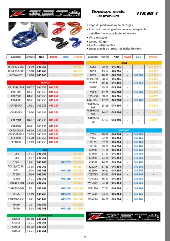 CRF250RALLY 17-19 045 259 045 260 - - YZ65 18-21 045 264 - 045 265 -