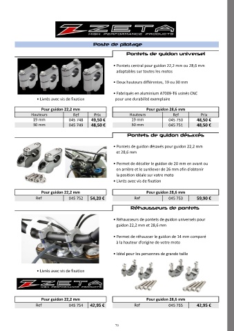 • Pontets central pour guidon 22,2 mm ou 28,6 mm