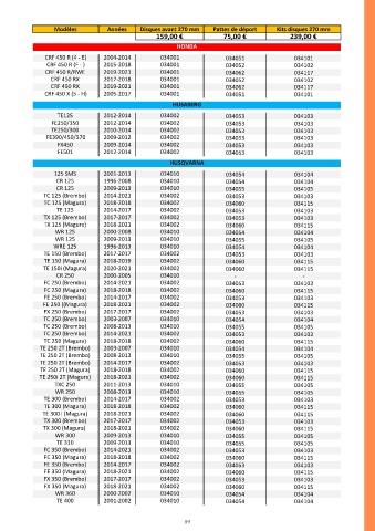 Modèles Années Disques avant 270 mm Pattes de déport Kits disques 270 mm
