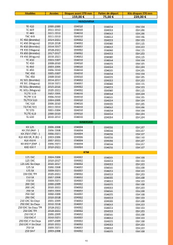 Modèles Années Disques avant 270 mm Pattes de déport Kits disques 270 mm