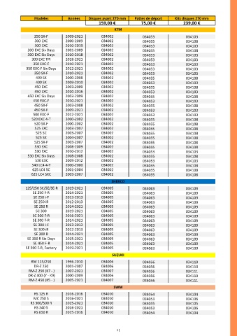 Modèles Années Disques avant 270 mm Pattes de déport Kits disques 270 mm